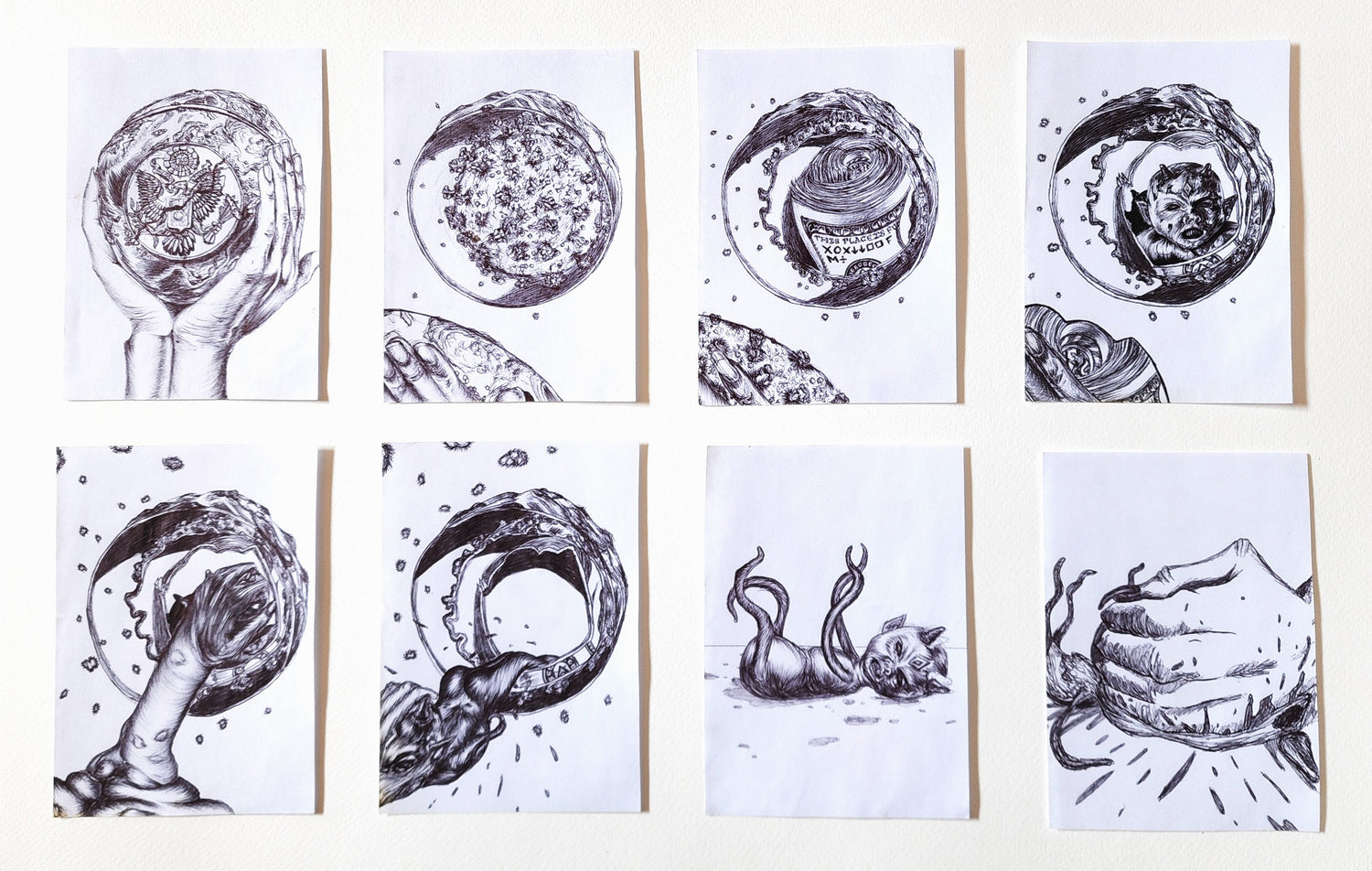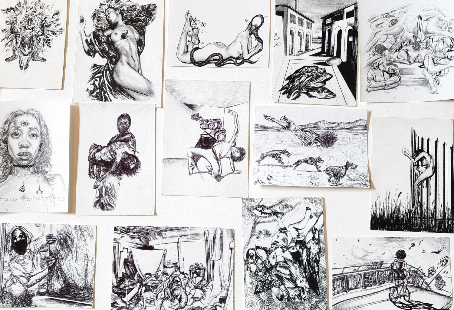 History always repeatsIlunga's drawings are an exploration of African history and evolution, using contemporary...